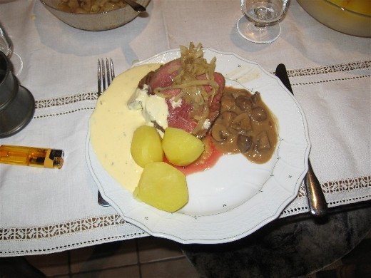 und jetzt Foto, mit der Bernaise hab ich was geschlabbert...Chateau zubereitet mit Niedriggartemperatur und Pilzgemüse mit Kartoffeln. :PNetti