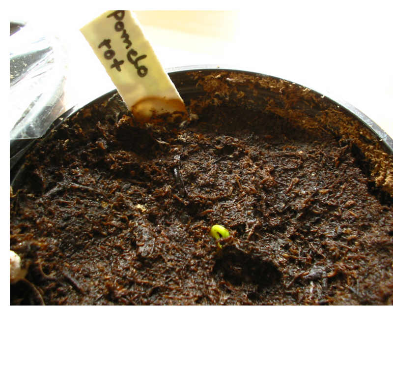 Letzens hatten wir es mal im Gemüsebeet bei den exotischen Pflanzen über die Aussaat einer Honigpomelo und die wenigen Kerne die drinn sind. Ich habe ausgesät und das Resultat sieht so aus: