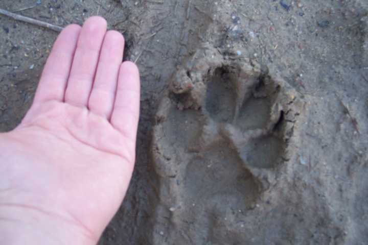 !Abdruecke hat er nicht hinterlassen, aber er ist bei meinem Erscheinen sehr schnell auf die Mauer geklettert (1,60 m!) und hat sich, einmal oben, in aller Seelenruhe von mir Anstaunen lassen. Dann zog er weiter, oben auf der Mauer entlang. Und das am hellichten Tag, mitten in der Innenstadt.Jetzt weiss ich auch, wer vor einem Monat nachts meine 2-kg-Tuete mit Hornspaenen hinter dem Kuebel hervor- und die Treppe hochgezerrt hat!LG Anja