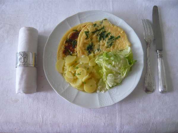 Bei uns gab es heute ein Niedersächsisches Gericht, dessen Rezept schon Wilhelm Busch in einem Gedicht verewigte, allerdings verfeinert mit Bärlauch. Sehr lecker!