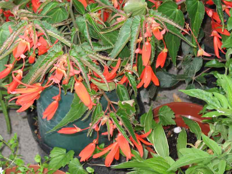 Eine sehr sonnenverträgliche Begonie ist auch Begonia boliviensis. Ihr leicht überhängender Wuchs sieht mit anderen Pflanzen sehr schön aus. Allerdings sollte die doch recht kräftige orange/rote Blütenfarbe zu den anderen passen.