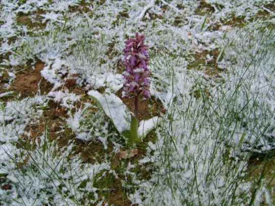 So... die Barlia robertiana blüht jetzt seit gut einer Woche, trotz Schnee und Frost, ohne Schutz...