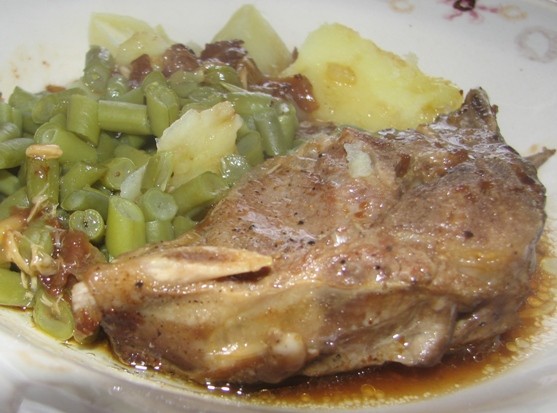 heute: putenteilchen mit rosmarin-kartoffeln und mit-gegrillten knobi. dazu eine suess-saure sosse (war irgendwo uebrig