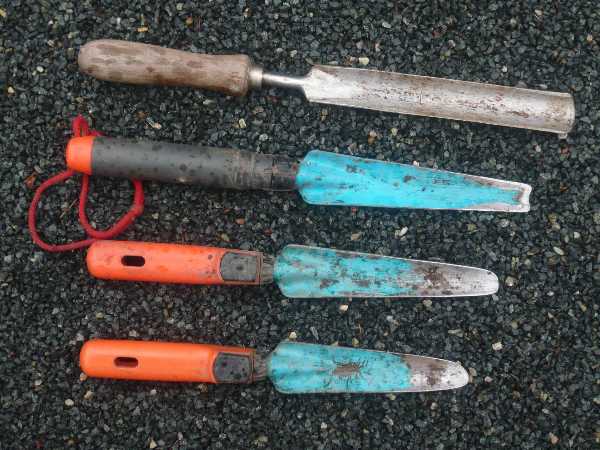 Ihr seht es regnet und ich kann nicht viel im Garten machen.So nun zu den Durchreißern oder Grubbern von oben nach unten.Nr 1 ziemlich groß kommt selten zum EinsatzNr 2 mein Liebligsdurchreißer den ich eigentlich recht häufig benutzeNr 3 eine recht alte kleine Hacke welche zur Unkrautbeseitigung auf bekiesten Flächen zur Anwendung kommtNr 4 von Sneeboer, da wollte ich mir mal was Gutes tun. Aber bedingt durch die kleine Tülle wackelt sie leicht. Ich habe neulich einen neuen Stiel besser angepasst. evtl geht es ja nun. Sie könnte mein Lieblingsdurchreißer werden da sie nach ergonomischen Gesichtspunkten gestaltet wurde.