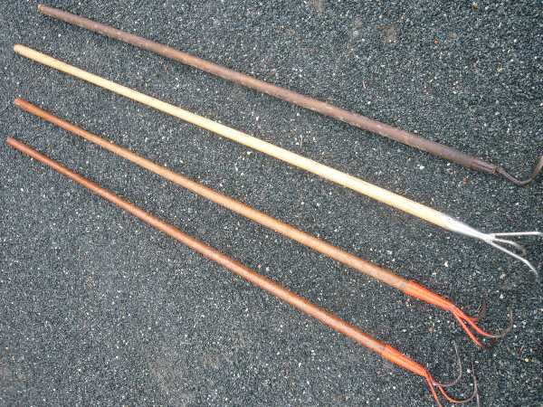 Die Stiele Peter, haben eine Länge von ca. 1400 mm. Also normale Stiellänge. Aber schau mal, von den Durchreißern verjüngen sich die Stiele vom Anfang an der Tülle 27 mm Ø auf ca. 20 mm Ø in der Mitte, um dann am Ende wieder das Maß von 27 mm Ø zu haben. Dadurch liegen sie sehr gut in der Hand. Leider bekommt man so etwas kaum noch.Der Stiel von der kleinen Hacke hat eine gleichmäßige Stärke von 27 mm Ø.