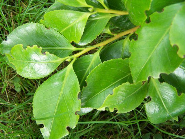 Vielen Dank, Barbara, so kommt es mir eigentlich auch vor, obwohl meine Kamellien das allererste Mal davon betroffen sind. Wahrscheinlich war es das erste Bild, das den Zweifel aufkommen liess, weil Dickmaulrüssler nur den Blattrand anknabbern, nicht die Mitte.Da ich ja jetzt bis Anfang September mit den Nematoden warten muss, spritzte ich sie mit einem Tee aus Rainfarn und Schachtelhalm. Ausserdem wurde jeder Topf mit einer Knoblauchzehe gespickt, denn tatenlos kann ich dieser wilden Zerstörung ja nicht zusehen!