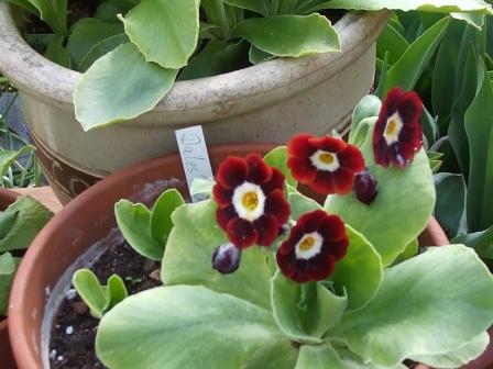 diese Showaurikel blüht zum ersten Mal (Aussaat April 2006, die "Eltern" sind die Sorten 'Strand' und 'Night and Day')