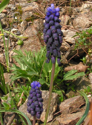 Yep, meine "wildtulpen" sind Muscari latifolium, Peter! Mittlerweile ohne Schnee ein helles Häuptlein über dunklem Frack mit breitblättrigen grünen Schößen