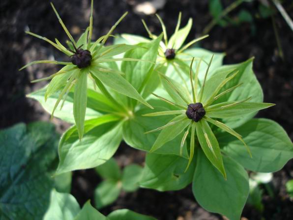 Diese Hübschen habe ich gestern zur Frustkompensation gekauft und eingepflanzt:Paris quadrifolia (oder so ähnlich); sehen irgendwie insektisch aus.LG Barbara