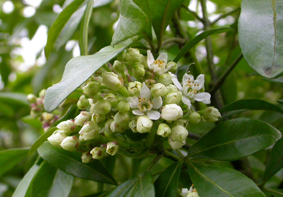 Stranvinia dummeri 'Winchester' eine Verwande von Photinia und auch immergrün wie vorige.