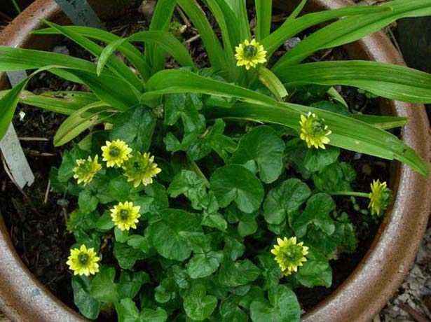 Ranunculus ficaria 'Flore Pleno'finde ich auch chick, wegen des grünen Zentrums