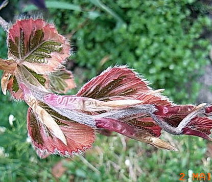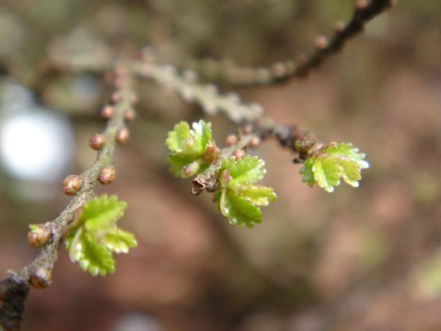 Fast überhaupt nicht zu fotografieren ist der Austrieb von Ulmus davidsonii 'Pygmaea' ,die Blättchen die hier zu sehen sind haben eine Größe von 1,5-2 mm! Mein mit Abstand liebstes Minigehölz!