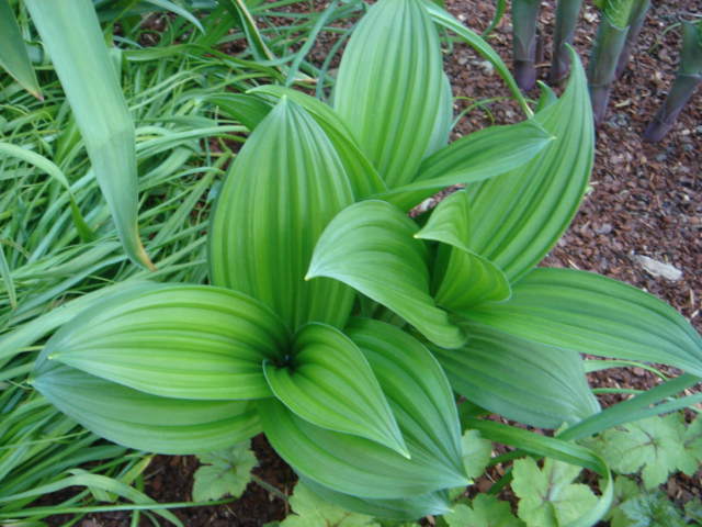 Die Veratrums haben richtig Gas gegeben. Hier ist Veratrum album 'Striatum'...