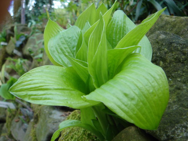 Hosta 'Alligator Shoes' hatte ich beim letzten Röntgen noch in der Tasche gehabt und vergessen raus zu nehmen ,daher der etwas eigenartige Austrieb....