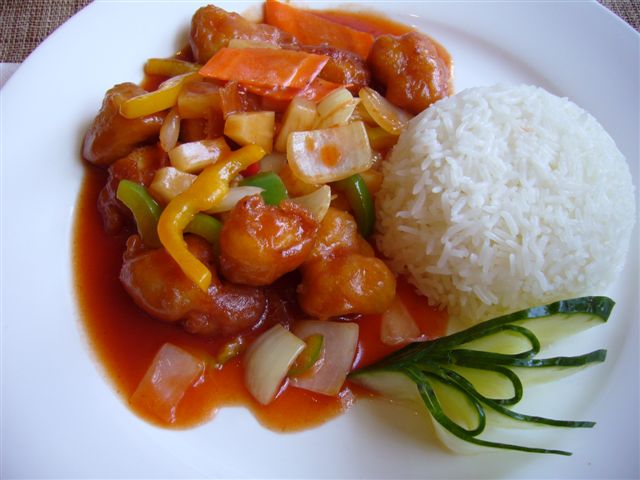 ... ich war beim Chinesenerst ein Gemüsesüppchen, danach Fisch süss-sauer mit Reis