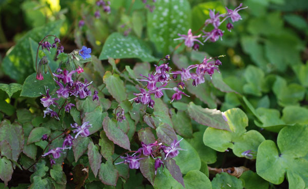 Von der guten Fee kann man sich violette Blüten wünschen ,klappt meistens wie hier bei Epimedium grandiflorum 'Lila Fee' zu sehen ist.