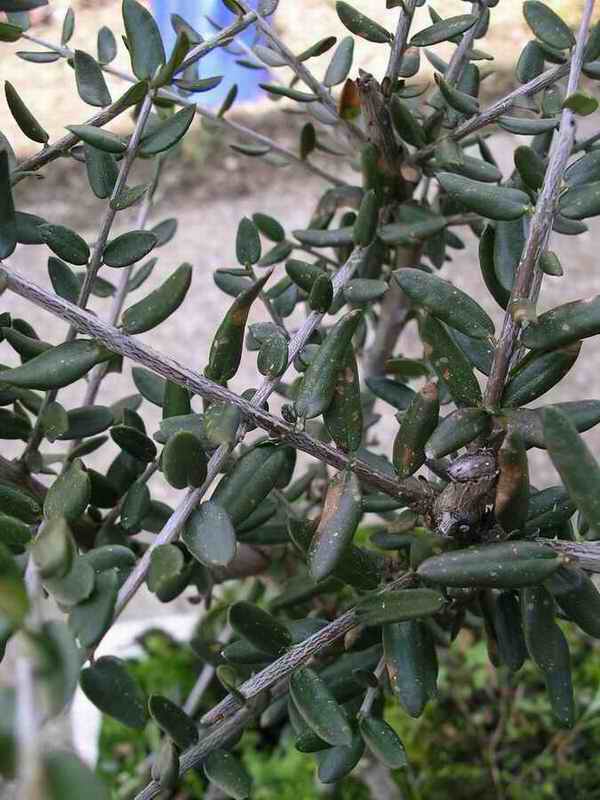 Olivenbaum? - kann das sein? Die Blättchen sind nur ca. 1 cm groß und sitzen ganz dicht.Die Blätter meines Olivenbaumes sind viel größer, auch eher grau als grün wie bei dem Baum und sitzen nicht so dicht. Die Vorbesitzerin sagte, der Baum war im Topf im Winter draussen!Gruß Karin