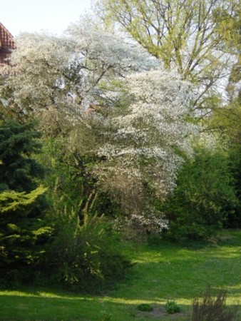 Ja, so schön sollte meine Felsenbirne auch sein. Aber vielleicht krieg ich sie ja wieder hin. Verpflanzen möchte ich sie nicht, sie ist jetzt fast 20 Jahre alt. Das wäre - für sie und für mich - zu viel Stress.Bin aber am überlegen, ob ich nicht noch eine Stelle im Garten finde, wo ich eine zweite hinpflanzen könnte...Hier mal ein Foto von einer ca. 50 Jahre alten Amelanchier.sie bekam volle Sonne (Süd) und ser Standort war durch extremen Wurzeldruck von Pappel und Hasel recht trocken. Zurück- oder ausgeschnitten haben wir sie nie und sie hat jedes Jahr so mächtg geblüht.Ich denke Amelanchier sind 'Lebenskünstler' und was ihnen nicht bekommt, sind super und zu feuchter Boden.Deine sieht in der Tat recht spärlich aus und nach meinem Dafürhalten würde ich sie an eine andere Stelle pflanzen. Mit weniger Feuchte, mageren Boden und Vollsonne.
