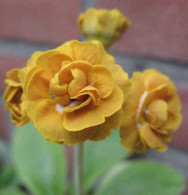 der Blütenstand von Primula Double Auricula 'Crimson Glow' ist auch nicht schlecht! Mit dem Hochblatt.