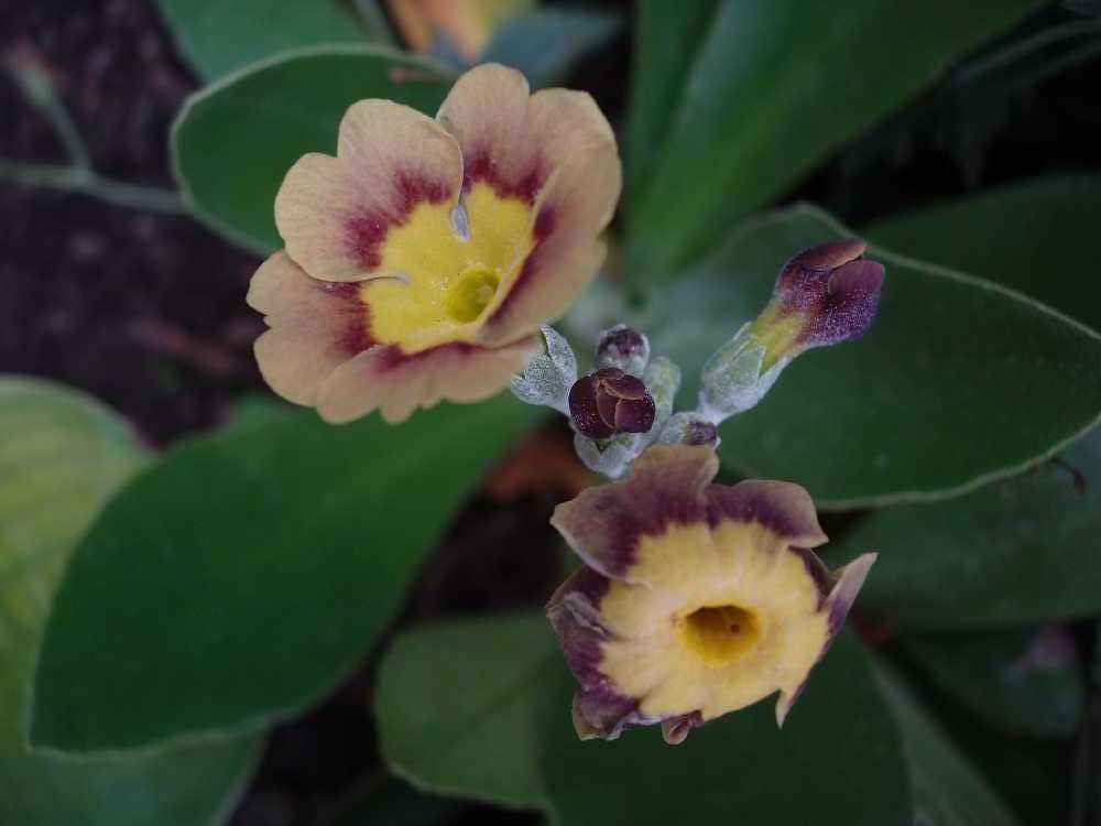 eine verwirrte gartenaurikel, schon etwas vom regen gezeichnet...