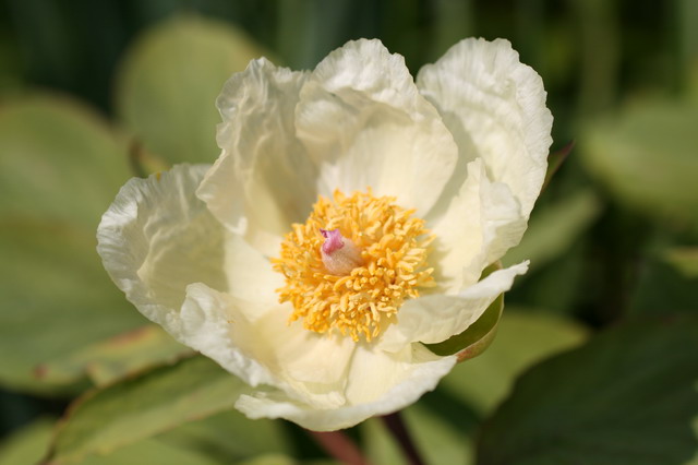 Diese Päonie habe ich im hiesigen BoGa photographiert. Sie hat einen japanischen Namen, den ich mir leider nicht merken konnte, übersetzt heiß es "Flug der Kraniche" - ich finde, das paßt ganz wunderbar!