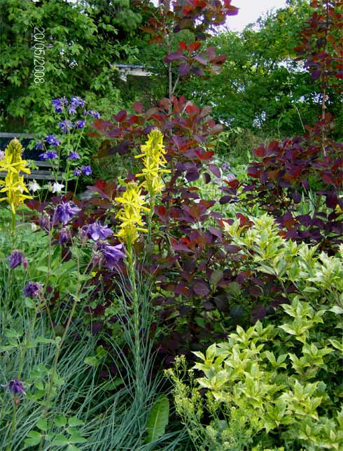 weil ich gerade dabei bin - Junkerlilie (Asphodeline lutea) vor Perückenstrauch, passt farblich sehr gut zusammen, wie ich finde.
