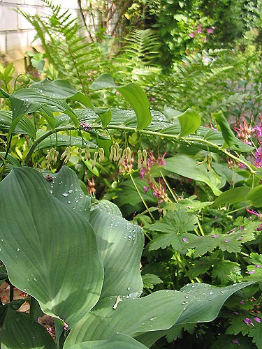 Halööle,hier die Kombi Hosta & Salomonriegel,d er sich so schick über die Hosta neigt [size=0](und im Hintergrund noch Storchenschnabel und Farn)[/size] LG topfgarten