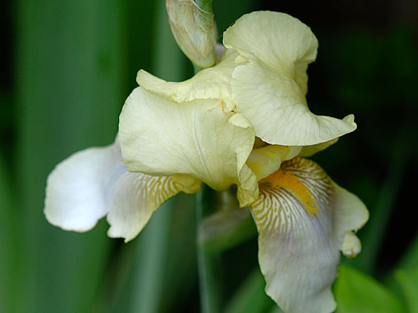 Die Lösung des Pseudo-Lugano-Rätsels habe ich im eigenen Garten gefunden. Falls es interessiert.Ich hatte damals vom Botanischen Garten ein paar Irisse gekauft, darunter eine mit dem Namen 'Mary Barnett' auf dem Etikett. Sie erweist sich als identisch mit der sogenannten 'Lugano'. Beide haben in den ersten Tagen bläuliche Hängeblätter, die später ausbleichen. Das Hellgelb der Domblätter bleibt. Farblich ist die MB identisch mit flavescens, aber die Hängeblätter sind breiter, die Domblätter bleiben geschlossener, der Bart ist dunkler, und die ganze Pflanze ist weniger zierlich.Ein Bild von Mary Barnett vorm Ausbleichen: