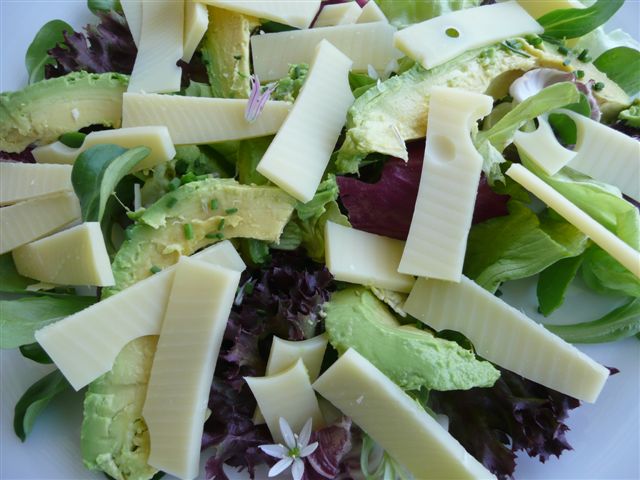 ... bei der Hitze (30.9°) blieb die Küche heute kalt, es gab einen Blattsalat mit Avocado und Käse