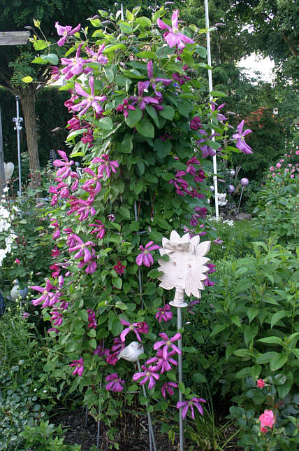 Die Cl.vit Margot Koster steht in voller Blüte. Der habe ich das Leben gerettet. Sie war bei einer Bekannten im Boden drin und wuchs nicht und verschwand einfach. Ich mußte Ihr eine neue besorgen und grub die Margot Koster aus und warf sie nicht weg, sondern topfte sie ein und wartete. Siehe da, sie trieb wieder aus und so habe ich sie an gleich an Ort und Stelle gepflanzt. Sie ist doch wunderschön.LG Elis.