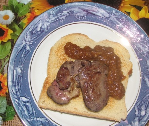 heute gab es toast mit gebratener haehnchenleber. dazu ketchup (selbstgemachter vom vorjahr - der muss ja langsam weg
