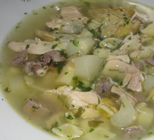 heute gab es ein halbes haehnchen und herzchen in einem eintopf mit spargel und nudeln.