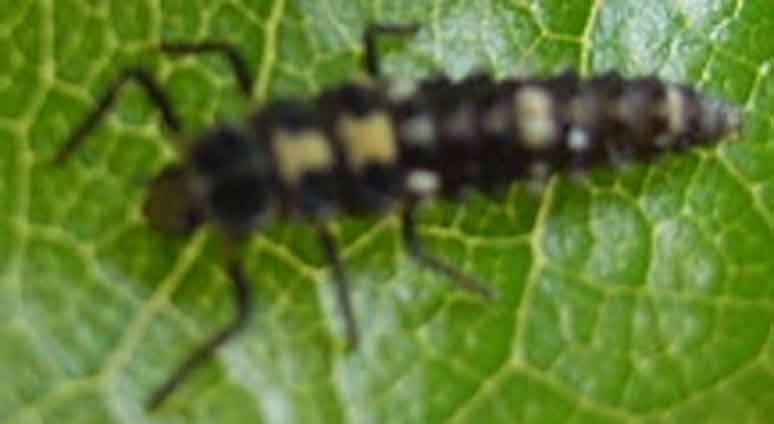 ,tröste dich, du bist nicht allein, nur zufällig entdeckte ich, daß es sich bei diesem doch wenig schmucken Käfer um eine Marienkäferlarve handelt. Die Larven fressen bis zu 600 Blattläuse täglich, sehr erfreulich, der fertige Käfer schafft "nur" bis zu 60 Stück.