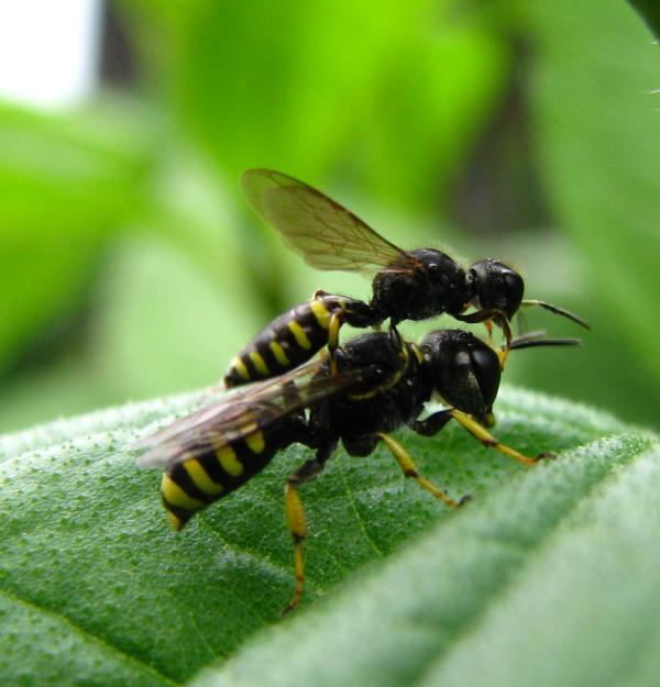 Hier mal Spinnenameisen.Das Weibchen hat keine Flügel und wird vom Männchen zu einem passenden Biotop getragen - dort wo sich Fliegenspiesswespen aufhalten.