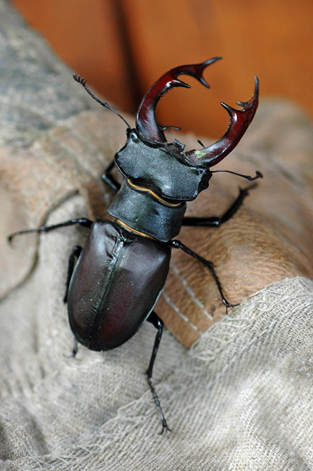 Der hier saß gestern Abend mit drohend erhobenem "Geweih" am Rand des Rasens, ich konnte den Rasenmäher gerade noch in eine scharfe Linkskurve bringen und so einen Zusammenstoß vermeiden.