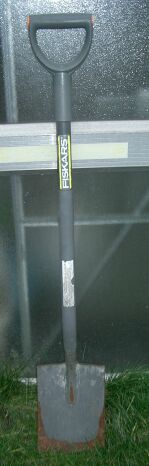 Hier wie versprochen das Bild von meinem Spaten, ist von der Firma Fiskars. Das Blatt ist nicht aus Edelstahl. sndern war mal lackiert, vom Gewicht ist er nicht schwerer als der Idealspaten(2. Bild) mit Edelstahlblatt.Beide sind bei GG in Gebrauch, und er gräbt damit alles, bisher ist noch nochts verbogen oder gebrochen.