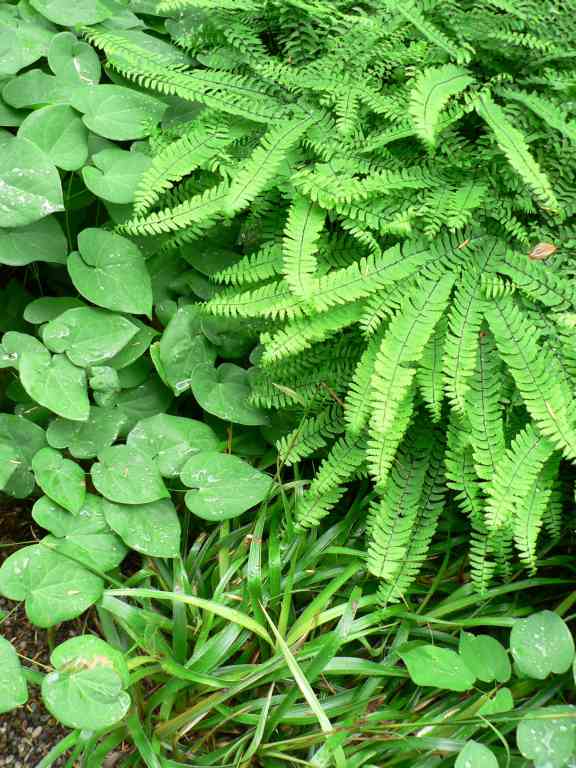 Hallo Sabine,hier noch paar Anregungen, wenn es mit dem Moos nicht klappt:Blattkontraste im Schatten mit Farn, Elfenblume und Schattengras (die exakten Namen kommen bei Bedarf sicher von den Fachleuten hier), gesehen im Hermannshof Weinheim