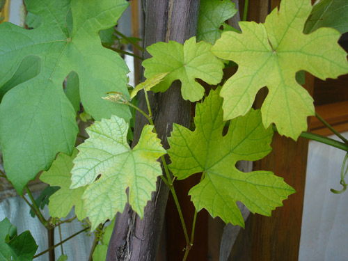 Mein Wein ist leider auch ziemlich gelb. Ist das jetzt Chlorose? Ich dachte eigentlich, dass er einfach generellen Nährstoffmangel hat, weil er jedes Jahr stark wächst und ich ihn kaum je gedüngt habe. Womit könnt ich ihn am besten düngen?