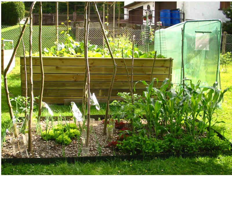 !Das mit der durchdachten Mischkultur gelingt mir auch höchstens ansatzweise, im Frühjahr, bei Frost, am Schreibtisch. Beim Säen und Pflanzen verselbstständigt dann dieses Programm meistens irgendwie und mutiert gewaltig....Meine Kisten-Farm hab´ ich ja schon öfter mal gezeigt, heute hab´ ich nochmal neue Bilder gemacht.Das meiste Gemüse wächst in mittlerweile 4 Hochbeeten à 4,5 qm, in diesem Bereich ist die meiste Sonne, aber auch nur höchstens 30cm steiniger Boden, darunter anstehender Fels...