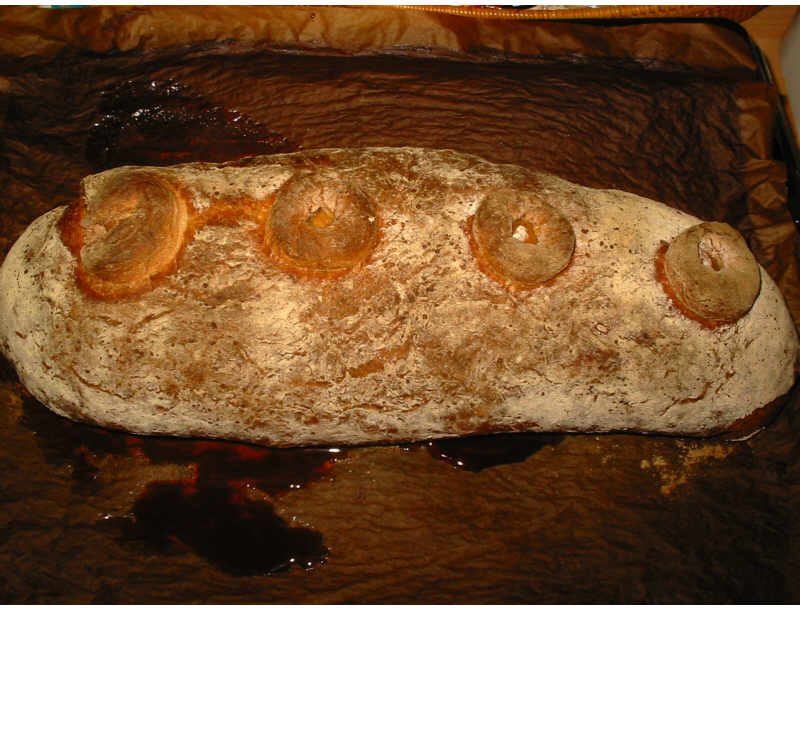 Beim Backen ist ganz zum Schluß leider doch etwas Sud ausgetreten, da war das Brot an dieser Stelle leider etwas matschig, aber lecker.