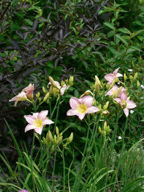 Das ist ja ein sehr schöner Faden... . Schöne Ideen und neue Anregungen findet man hier! :D :D :DIch habe den Holunder mit Rosa Glauca, Geranium, rotem Breitwegerich, Rosa Giscard d'Estaing, Euphorbia, Iris, Silberminze und rotem Sauerampfer kombiniert.