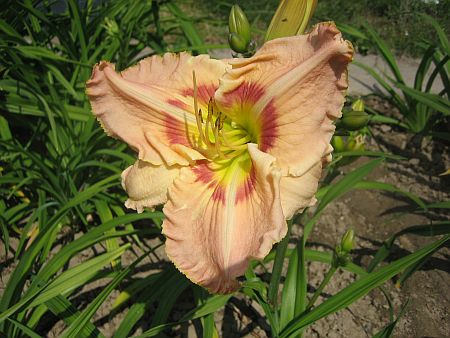 Ich habe im letzten August einen Topf mit 2-jährigen Sämlingen auseinandergenommen und einzeln eingepflanzt. Bei den letzten beiden war ich abgestorben und hatte sie zunächst in Wasser gestellt um sie später einzupflanzen. Aus dem Provisorium ist ein Dauerzustand geworden. Der Eimer ist randvoll mit Wasser und die hems schwimmen darin. So haben sie den ganzen Winter verbracht und zeitweise war das Wasser im Eimer durchgefroren. Die hems sehen immer noch so aus wie im August. Sie verharren sozusagen in Warteposition auf bessere ZeitenWährend des Elbhochwassers 2002 war auch hier allerlei überflutet. Viele Pflanzen sind eingegangen, die Hemerocallis sahen auch ganz furchtbar aus, sind dann neu ausgetrieben und haben sogar noch einmal Knospen gebracht. Ich war erstaunt.Die Jahreszahl stimmte nicht.