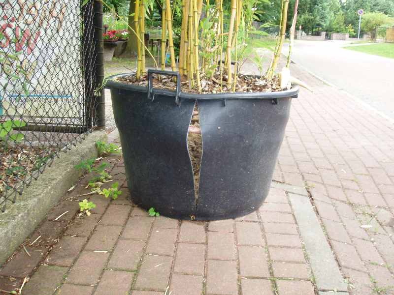 Ich habe einen Phyllostachys a. spectabilis in einem sehr großen Kübel (110 l), den hat er gestern oder vorgestern gesprengt.