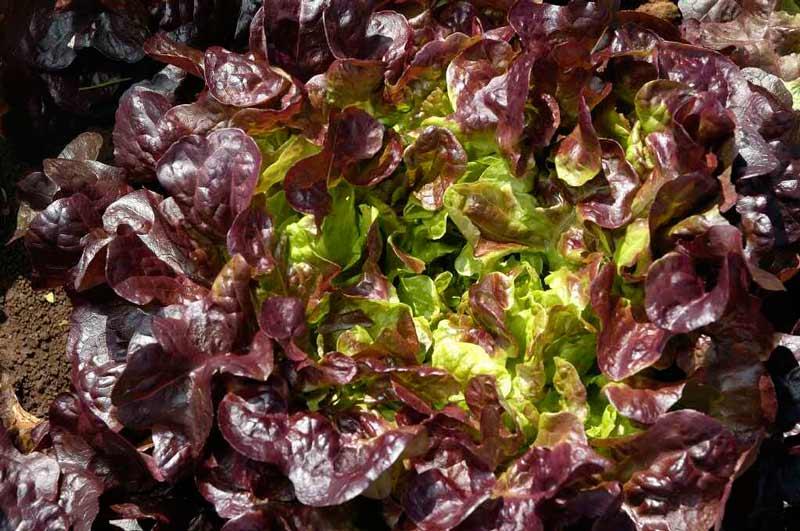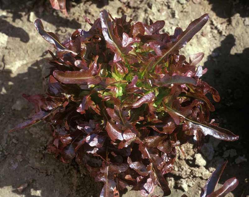 ein roter blattsalat. name unbekannt, auch aus einer mischung.