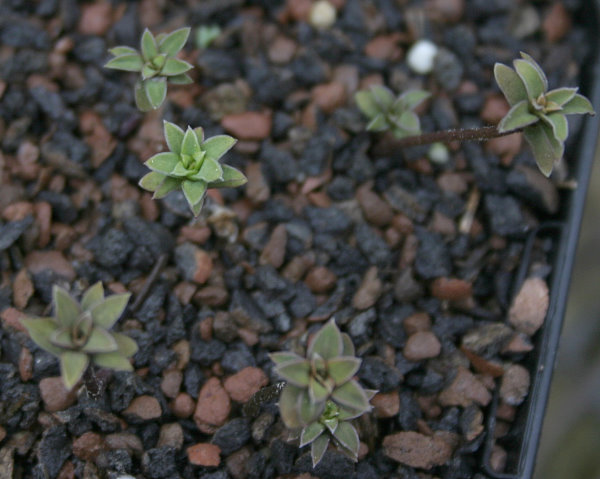kleiner zwischenbericht...die viola cotyledon sämlinge haben zwischenzeitlich kleine rosetten gebildet. sie stehen auf ~2-3 cm langen stängeln über dem substrat, z.t. auch nur knapp darüber. den sämlingstopf hatte ich seit märz im freien, damit die sämlinge uv-strahlung abkriegen. ich hatte den topf während der nachtfröste im märz/april draussen vergessen...die ~ -4°C haben nicht die geringsten schäden verursacht, auch der regen scheint ihnen bis jetzt nichts auszumachen. tomir...weißt du wie sie durch den sommer zu bringen sind...trocken stellen oder feucht halten?