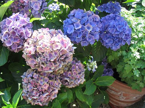 Blaue HortensieSo wie das letzte Grün in Farbentiegelnsind diese Blätter, trocken, stumpf und rauh,hinter den Blütendolden, die ein Blaunicht auf sich tragen, nur von ferne spiegeln. Sie spiegeln es verweint und ungenau,als wollten sie es wiederum verlieren,und wie in alten blauen Briefpapierenist Gelb in ihnen, Violett und Grau; Verwaschenes wie an einer Kinderschürze,Nichtmehrgetragenes, dem nichts mehr geschieht:wie fühlt man eines kleinen Lebens Kürze. Doch plötzlich scheint das Blau sich zu verneuenin einer von den Dolden, und man siehtein rührend Blaues sich vor Grünem freuen.Rainer Maria Rilke