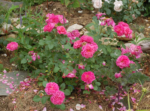 Einzelne tolle Blueten bilden sogar bei mir wenig beliebte Rosen :-X2008 ist zweifelsohne ein geniales Rosenjahr - keine Frage. und so wechselt meine "schoenste Rose 2008" auch, na will nicht sagen taeglich, aber sicher woechentlich.Zur Zeit ist eine meiner Lieblinge wieder diese ( also die, die im 4er Tross ganz oben ist). Es ist eine unbekannte Fundrose aus Winterthur, die im Aufbluehen dunkelpink ist und im Fortschreiten der Bluete immer heller wird. Auch fuer Besucher immer wieder ein Highlight.Mit in diesem Beet sind noch 3 andere Rosen. Ispahan, Clair Matin und der Napoleonshut... fuer mich passen die wunderbar zusammen.