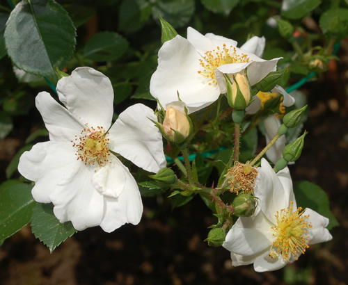 leider nicht die bestellte, sondern Weisse Max Frei. Auch schön, ein Bodendecker, aber die wird wohl kaum 5 m bringen. Schade. Die neuen Knöpfchen sind herrlich aprikotlachsfarben.