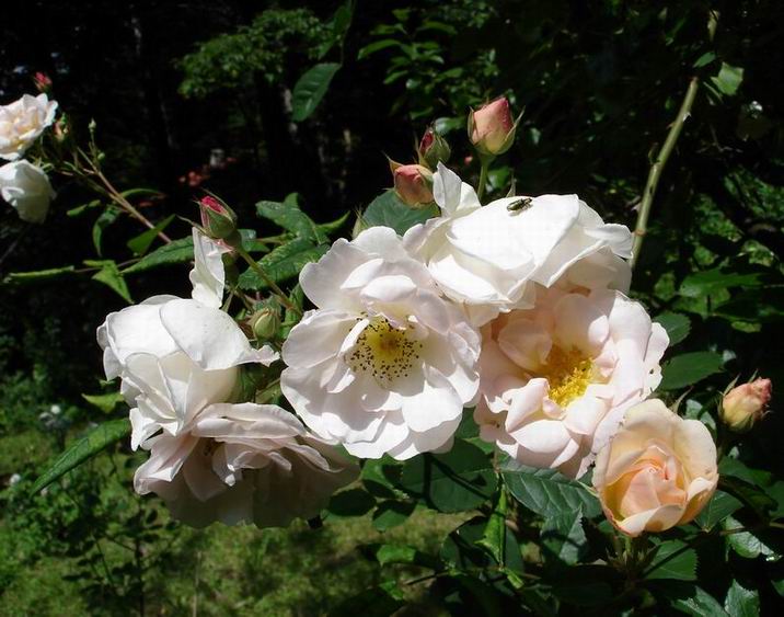 leider nicht die bestellte, sondern Weisse Max Frei. Auch schön, ein Bodendecker, aber die wird wohl kaum 5 m bringen. Schade. Die neuen Knöpfchen sind herrlich aprikotlachsfarben.