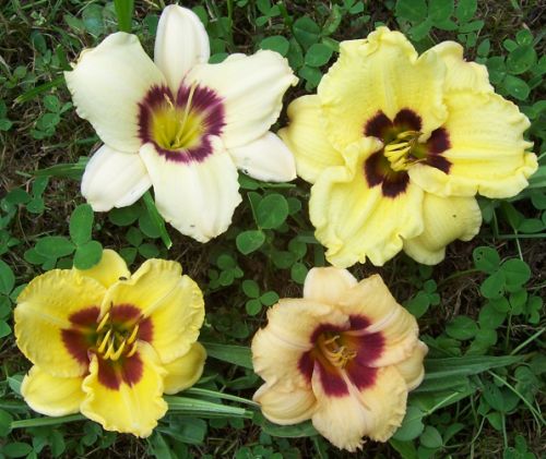 Und noch ein Gruppenbild mit Kleinblütigen, von links nach rechts:Pandoras Box, Siloam Doodlebug, Little Big Man und eine Unbekannte die ich als Baby Blues bekommen habe.